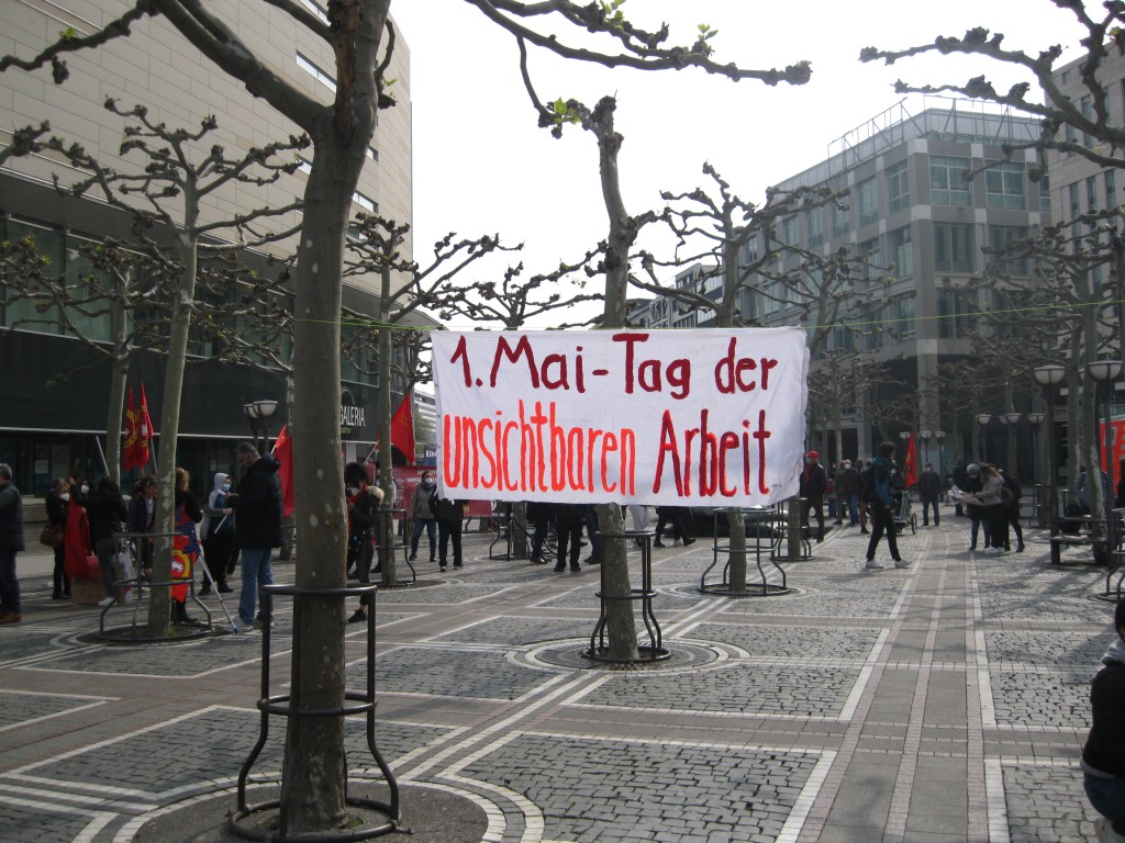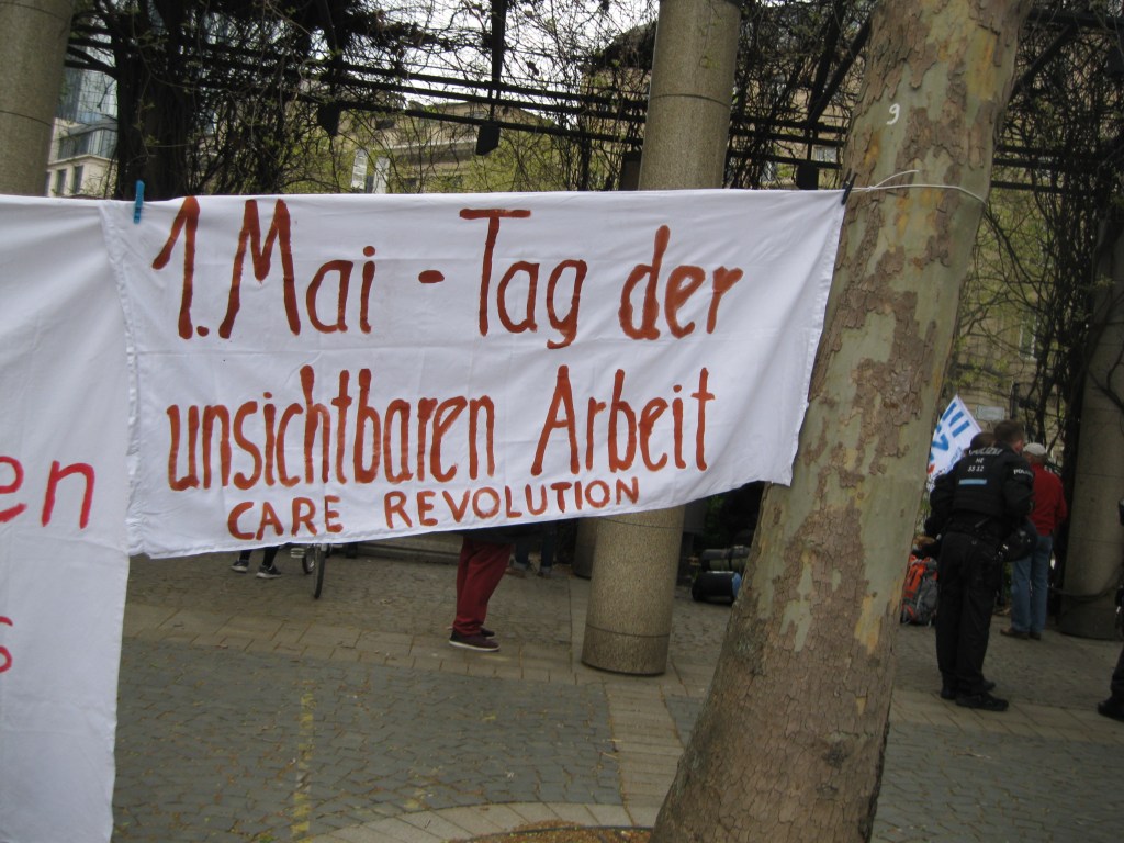 Trotz Corona – und wegen Corona mit Maske und Abstand – sind viele zum 1. Mai in Frankfurt auf die Straße gegangen. Auch wir. Und #CareArbeit nahm ziemlich viel Raum ein! Nicht nur durch unsere Botschaften, unsere Banner, unsere Plakate, sondern auch in den Redebeiträgen der diversen Redner:innen auf der Schlusskundgebung am Opernplatz. Corona hat die Bedeutung von Carearbeit sichtbar gemacht. Selbst für die, die das bislang einfach stur ignoriert haben.