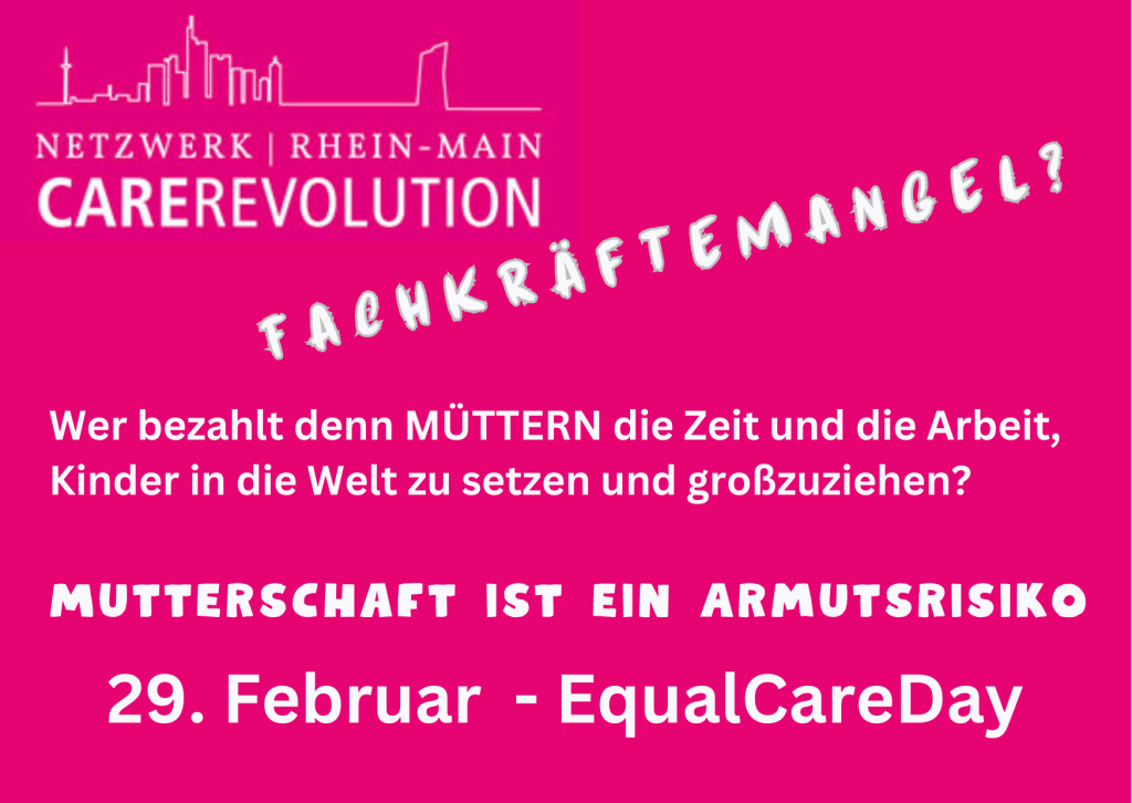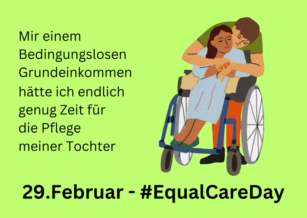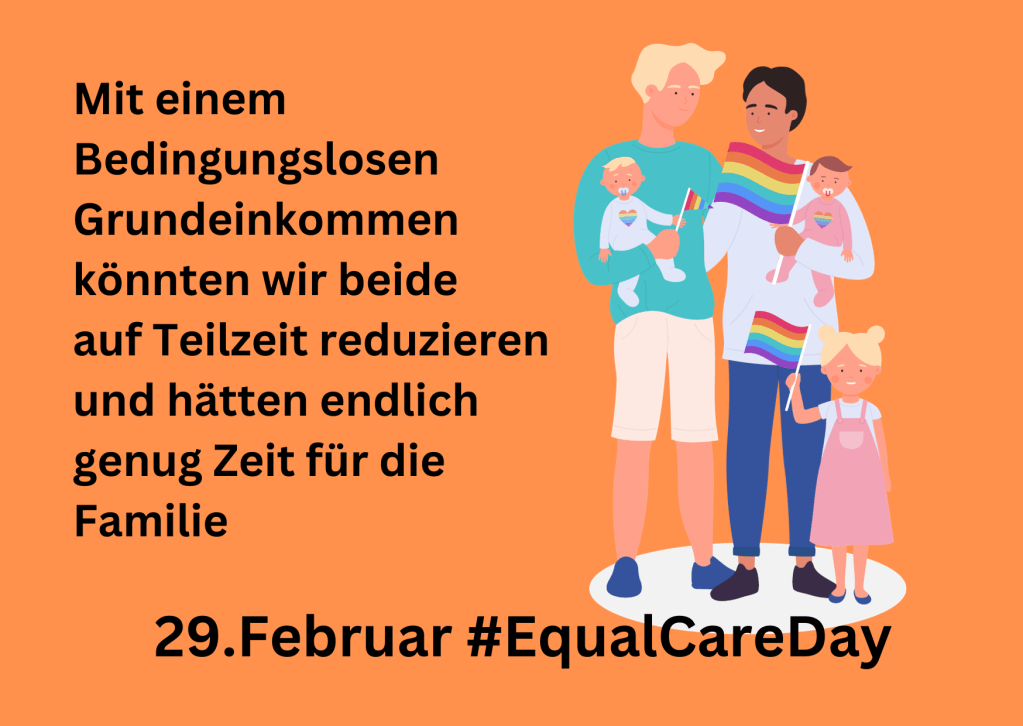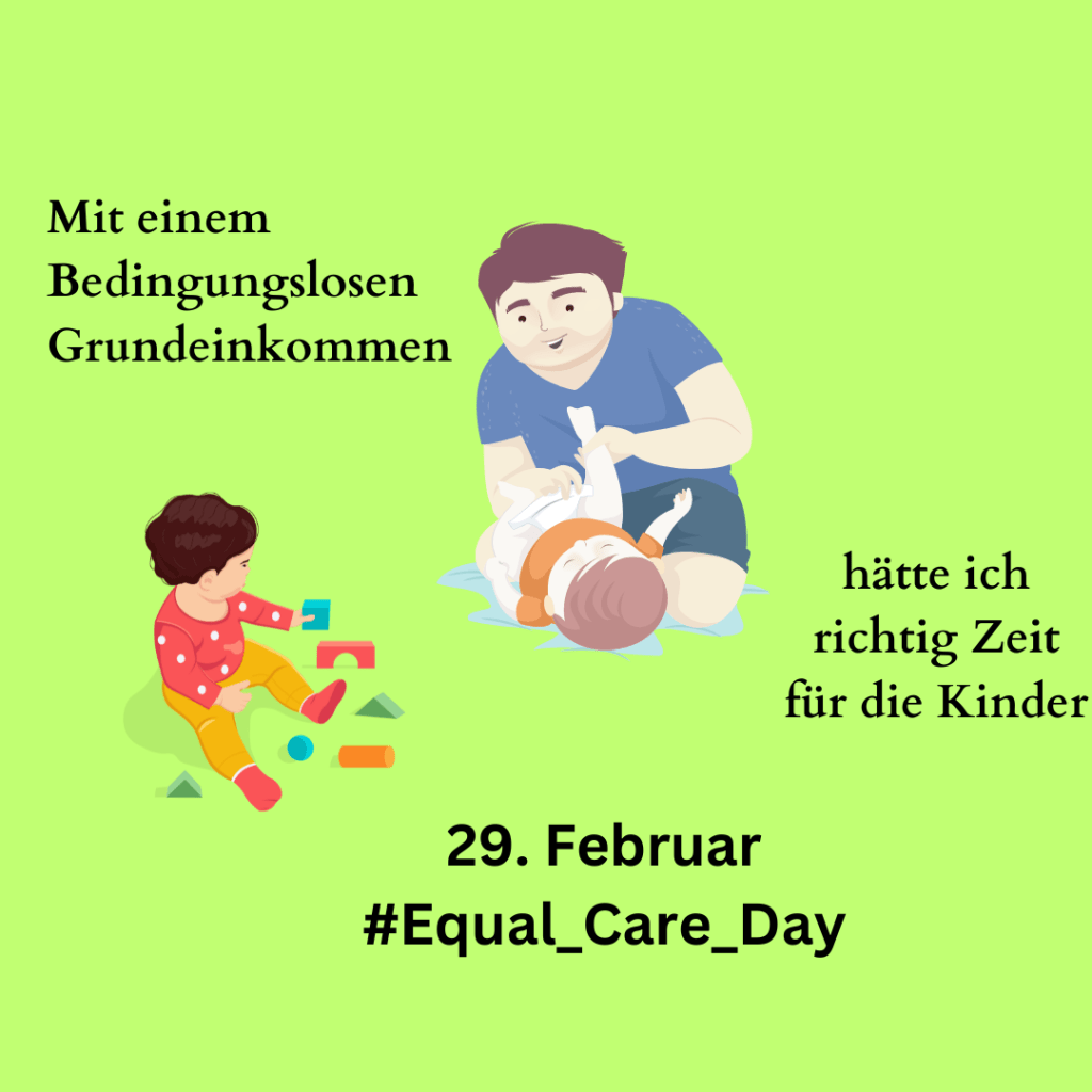 Carearbeit muss wertgeschätzt werden als Grundlage alles anderen. Ein Datum, das daran erinnert und dazu ermahnt, ist der 29. Februar. Dieses Datum findet nur alle vier Jahre statt, an einem Schaltjahr. Es wurde bewußt ausgewählt, weil Carearbeit in unserer Gesellschaft so organisiert ist, dass sie zu 80% von Frauen erbracht wird. Es soll damit darauf hingewiesen werden, dass Männer* für die Menge an Carearbeit, die von Frauen* in einem Jahr geleistet wird, vier Jahre brauchen, also eben nur alle Schaltjahre das gleiche Ziel erreichen. Unter Männer* passen alle die Menschen, die von Carearbeit anderer einfach gedankenlos profitieren und der Überzeugung sind, sie hätten ein Recht darauf. Wir mahnen auch, dass unser Wirtschaftssystem gedankenlos Wohlstand auf Kosten der kommenden Generationen und der Menschen aus anderen Teilen des Planeten schafft, indem für Warenproduktion dreimal so viel verbraucht wird, wie uns zusteht. (Als Prozentsatz der Weltbevölkerung).