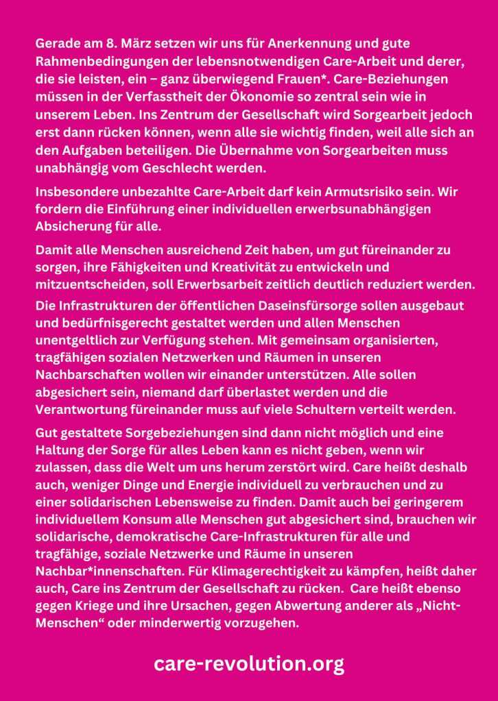8.März – Internationaler Frauen*tag, Internationaler feministischer Kampftag Veröffentlicht am März 7, 2024 von carerheinmain Teilen mit: Klicke, um auf X zu teilen (Wird in neuem Fenster geöffnet) X Klick, um auf Facebook zu teilen (Wird in neuem Fenster geöffnet) Facebook Gefällt mir Wird geladen … Ähnliche Beiträge