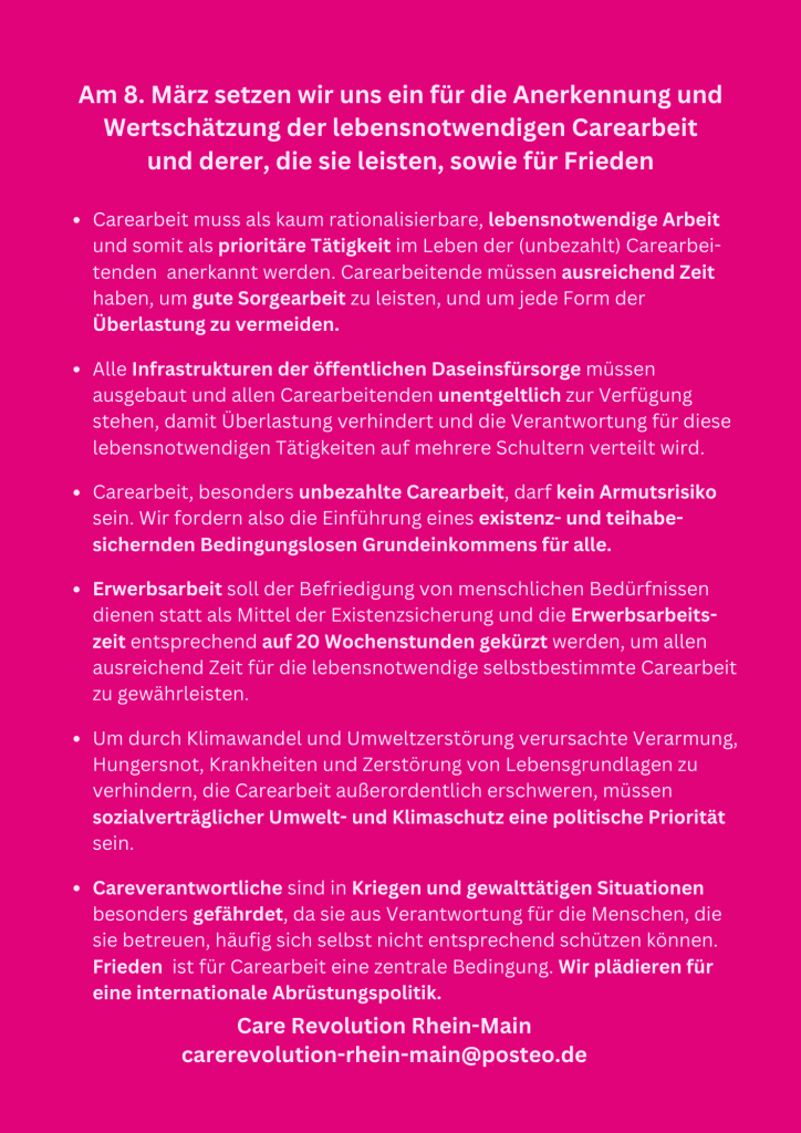 8. März 2025 Veröffentlicht am März 4, 2025 von carerheinmain Teilen mit: Klicke, um auf X zu teilen (Wird in neuem Fenster geöffnet) X Klick, um auf Facebook zu teilen (Wird in neuem Fenster geöffnet) Facebook Gefällt mir Wird geladen … Ähnliche Beiträge
